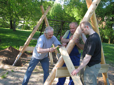 Von den eingeladenen Fraktionen des Ortsgemeinderats waren leider nur Mitglieder der SPD Fraktion erschienen. Es wurde eine Menge gearbeitet: Vier Fundamente wurde per Hand ausgegraben, die neue Schaukel wurde zusammengebaut und einbetoniert.